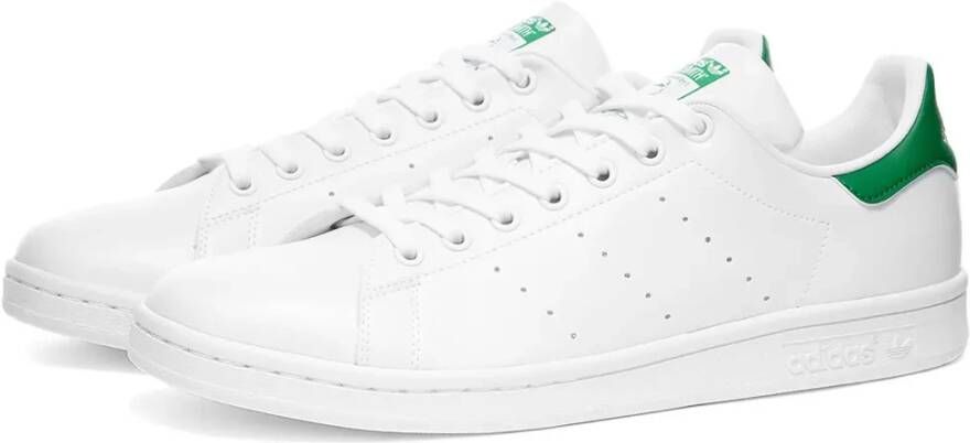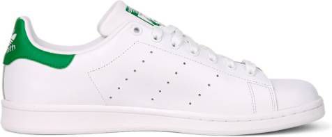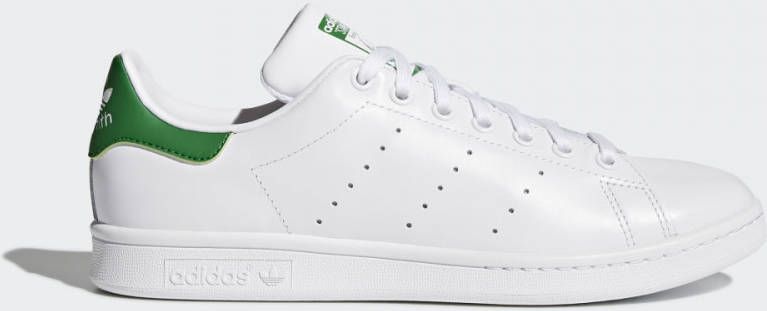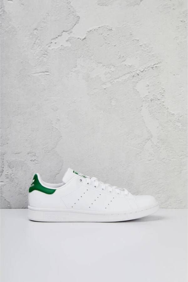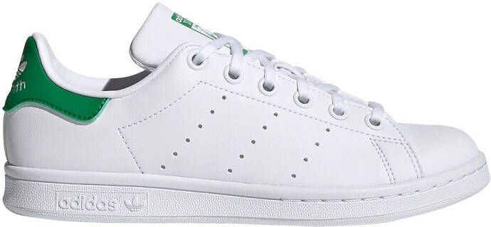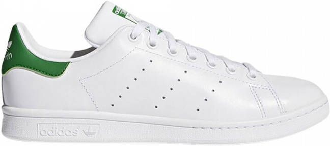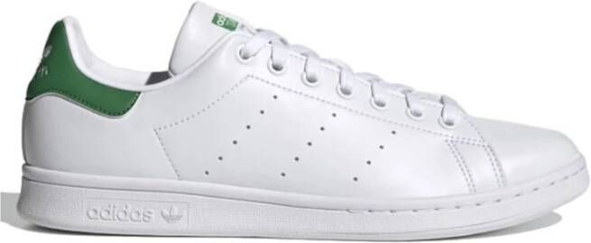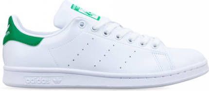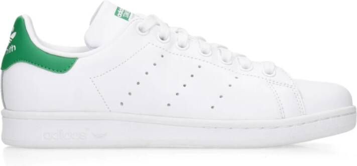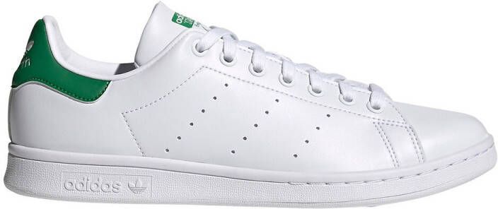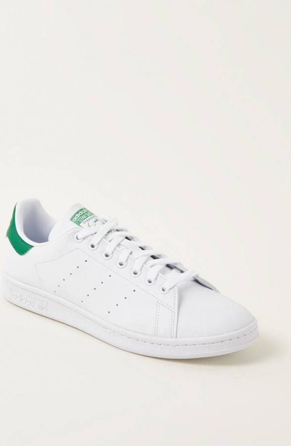 Stan Smith sneaker van adidas, vervaardigd uit soepel leer en uitgevoerd in wit. Op op de tong en hiel zijn merklogo's in groen aangebracht. Verder is de veterschoen afgewerkt met de welbekende perforatiegaatjes in strepen aan weerszijden. Een witte zool zorgt voor een klassieke sneakerlook. Gebruik een onderhoudsmiddel van Jason Markk om dit model langer schoon te houden.