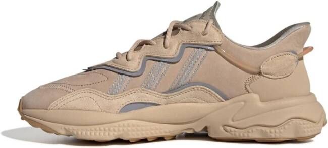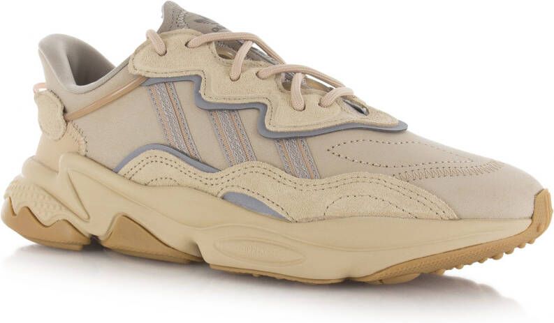 De adidas Ozweego (EE6462) in de kleur beige voor dames en heren. Deze beige adidas sneaker gebaseerd op de 90's en vroege 2000s is gemaakt van mesh, suède en glad TPU.