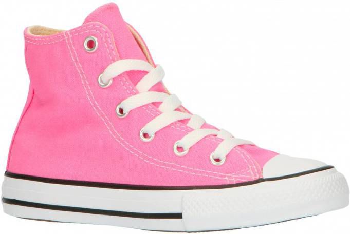 Converse All Stars Hoog Kids 3J234C Roze. Voor 23.59uur besteld, morgen geleverd. Details: Type: hoge sneakers Hakken hoogte: platte schoenen Kleur(en): roze Stijl: casual Gelegenheid: sport, vrije tijd.