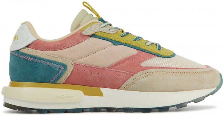 Damesschoen model Samoa in de kleur roze van HOFF Pasvorm Dit model van HOFF valt normaal op maat Beschrijving Lage suède sneaker voor dames van het merk HOFF. Deze lage sneaker met ronde neus is uitgevoerd in suède in de kleur roze. Verder zijn er okergele en groene details verwerkt op deze schoen. De sneaker bestaat verder behalve uit suède ook uit leer en mesh. De binnenkant is uitgevoerd in stof en het uitneembare voetbed is te vervangen door een persoonlijke inlegzool. De rubberen gekartelde zool heeft een medium profiel voor stevige grip.