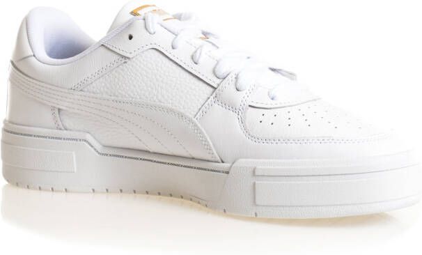 Sneakers voor herenCA Pro Classic 380190-01uit de collectie van Puma. Dit toffe model, een nieuwe uitvoering van de klassieke 80's Puma California, heeft een bovenwerk van wit imitatieleer. De binnenkant is in stof met een uitneembaar voetbed uitgevoerd. De sneakers vallen op door het cleane design en de perforaties op de neus. Goudkleurige branding is zichtbaar op de tong, aan de zijkant en op het hielstuk. De rubberen zool met Puma-opdruk, stiksels en witte katoenen veters maken de sneaks compleet. Kleur: wit. (Puma White).
