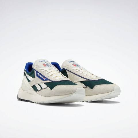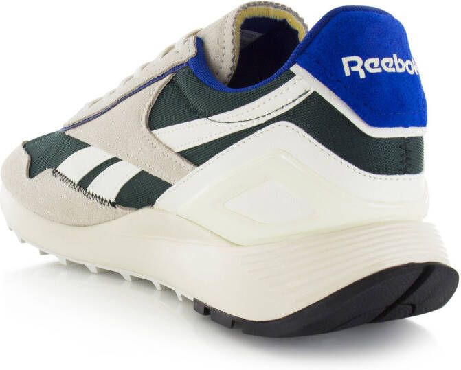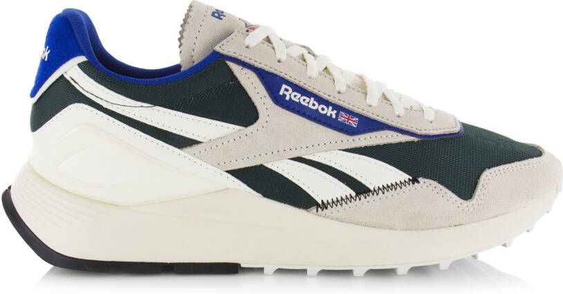 Classic Leather Legacy AZ sneaker van het merk Reebok. Deze groene herenschoen heeft een bovenwerk gemaakt van leer, suède en mesh. De CL Legacy AZ is voorzien van beige en blauwe accenten en Reebok-branding op de zijkant, achterkant en tong.
